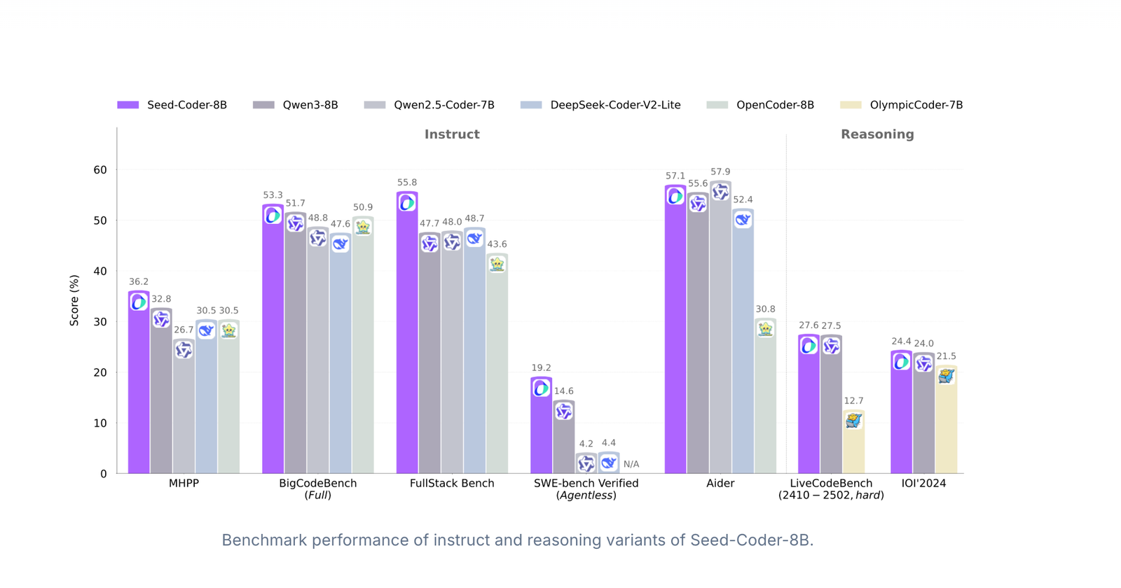 Seed-Coder Excels in Code Generation, Editing, and Multi-Step Reasoning Benchmarks