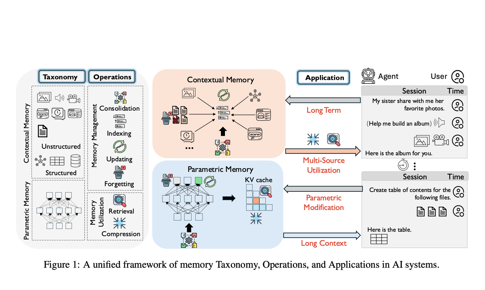 Researchers from the Chinese University, the University of Edinburgh, HKUST, and the Poisson Lab at Huawei UK R&D Ltd. present a detailed survey on memory in AI systems. They classify memory into parametric, contextual-structured, and contextual-unstructured types, distinguishing between short-term and long-term memory inspired by cognitive psychology. Six fundamental operations—consolidation, updating, indexing, forgetting, retrieval, and compression—are defined and mapped to key research areas, including long-term memory, long-context modeling, parametric modification, and multi-source integration. Based on an analysis of over 30,000 papers using the Relative Citation Index, the survey also outlines tools, benchmarks, and future directions.