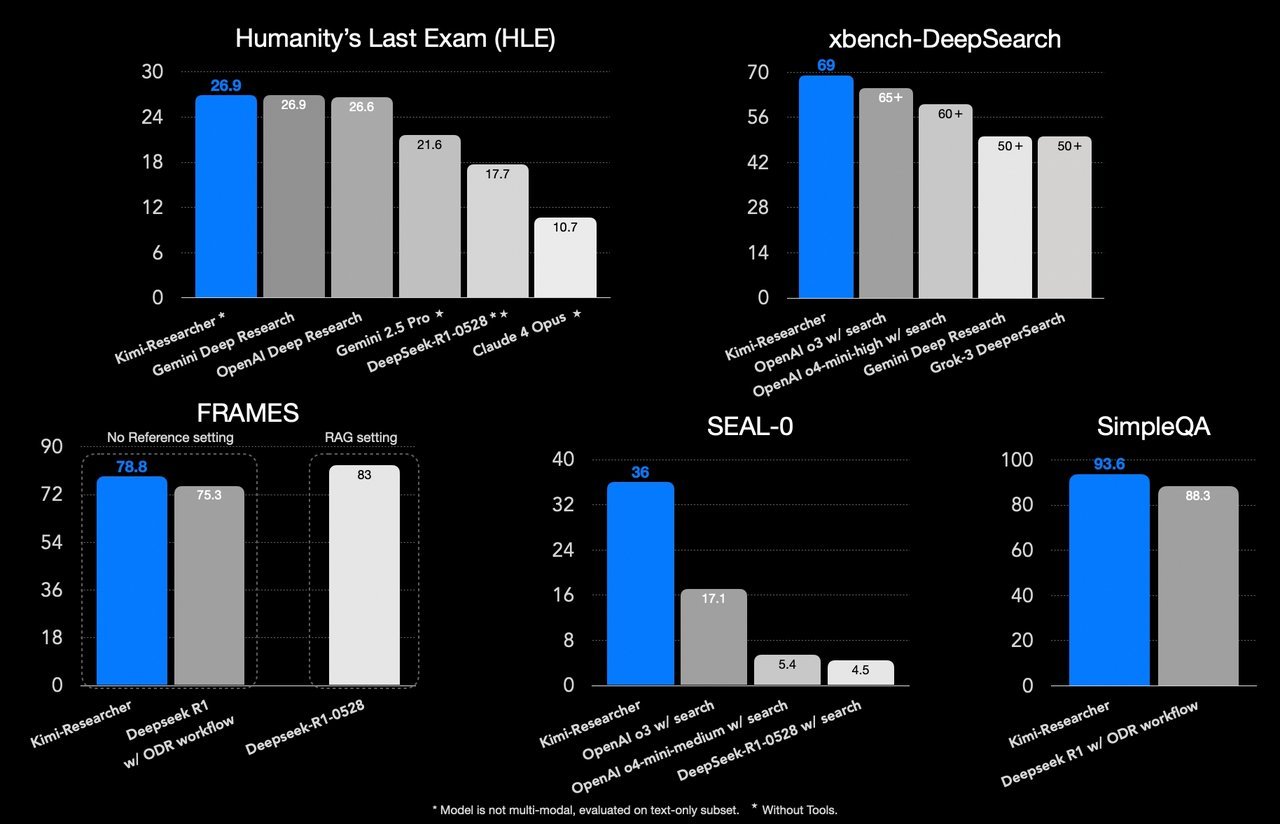 Moonshot AI introduces Kimi-Researcher, an autonomous agent trained entirely with end-to-end reinforcement learning to tackle complex reasoning and search tasks. Unlike traditional multi-agent systems or supervised learning, Kimi-Researcher learns through dynamic interaction and self-optimization. It demonstrates significant improvements on challenging benchmarks like Humanity’s Last Exam and xbench-DeepSearch, showcasing advanced capabilities in multi-step reasoning, tool use, and exploration. Innovations include synthetic task design, gamma-decay reward shaping, context management, and asynchronous rollouts—resulting in more scalable, adaptable, and generalizable AI agents.