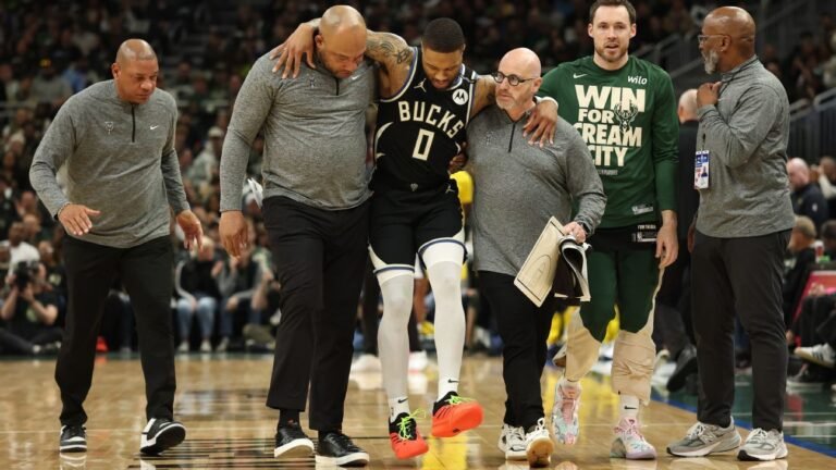Bucks’ Damian Lillard exits vs. Pacers with lower leg injury
